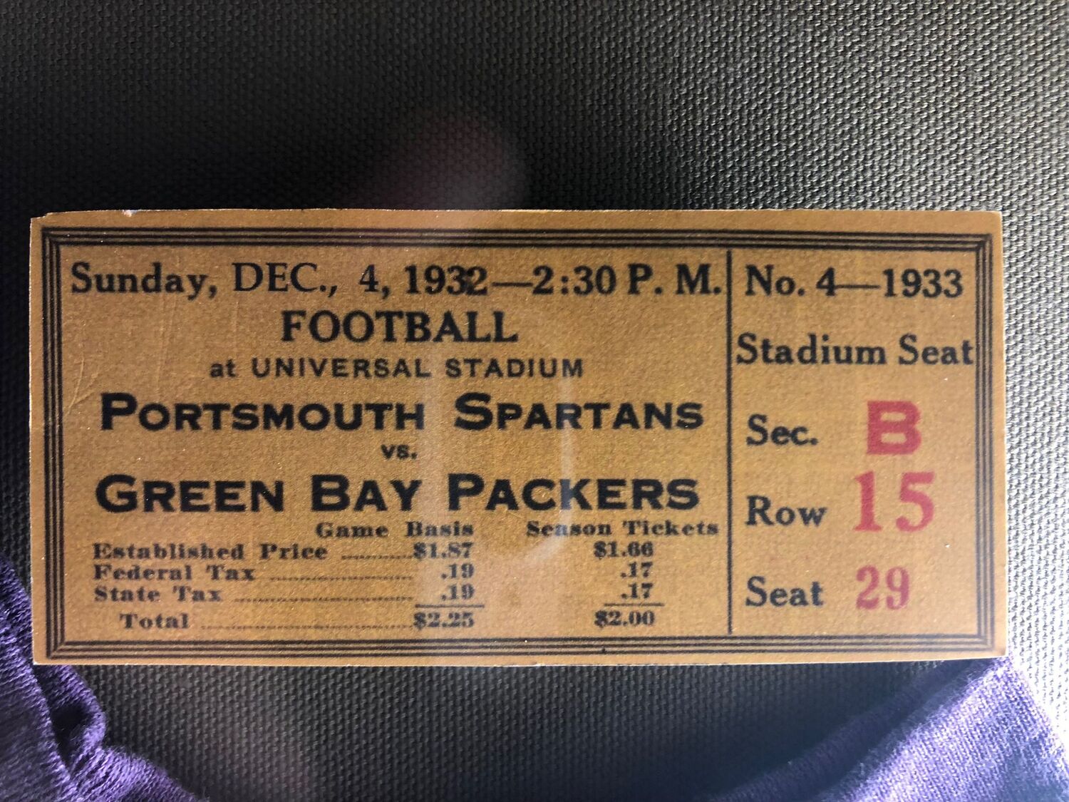 Boleto del “Iron Man game” contra Green Bay del 4 de diciembre de 1932.